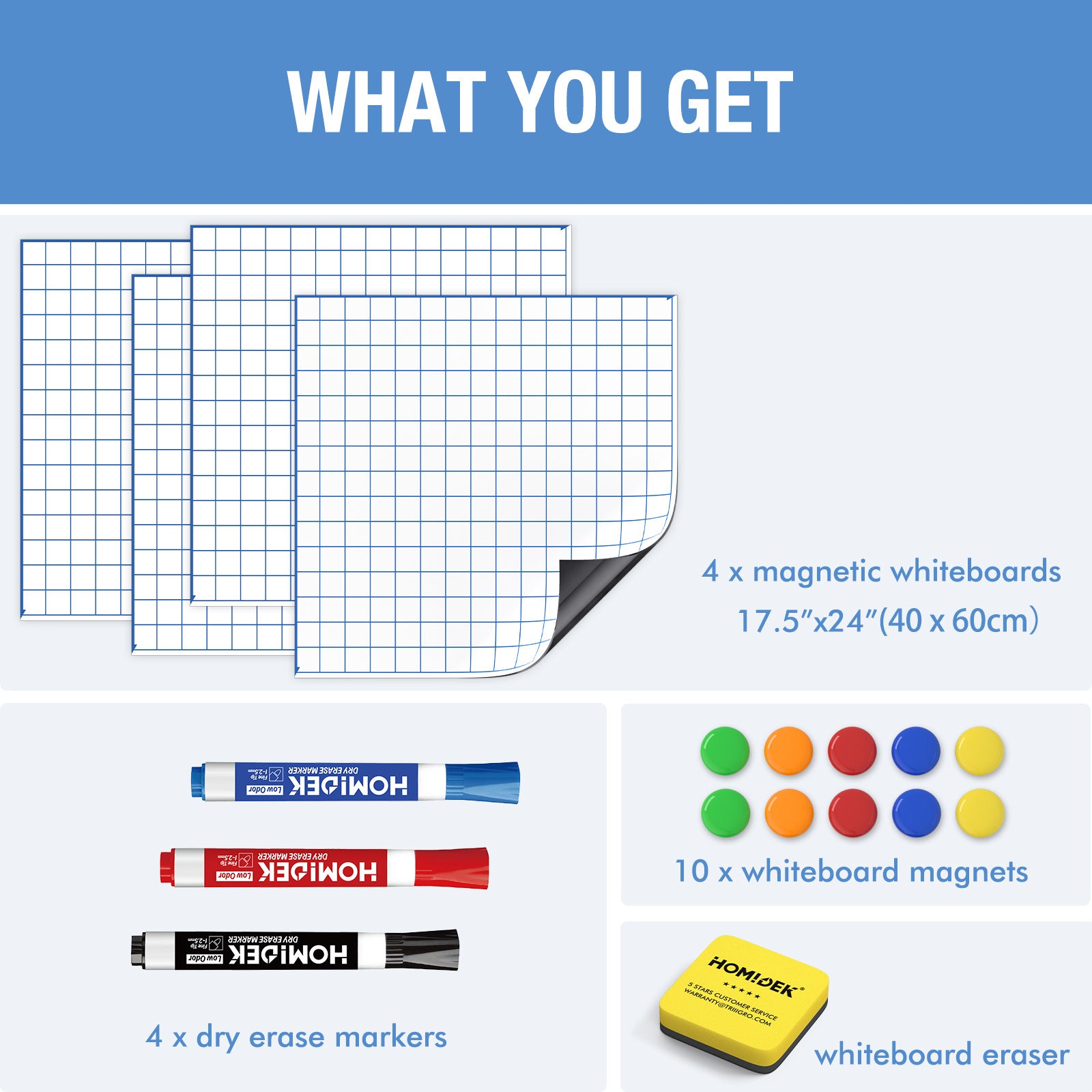 Include 5 colorful fine tip dry erase markers, 1 big eraser and 1 fridge magnetic whiteboard. Everything is strongly magnetic so the accessories will always stick right away next to your magnetic dry erase board for refrigerator. make more fun for your kids and family to paint or write notes etc. Ideal complete set for home, office, or classroom.