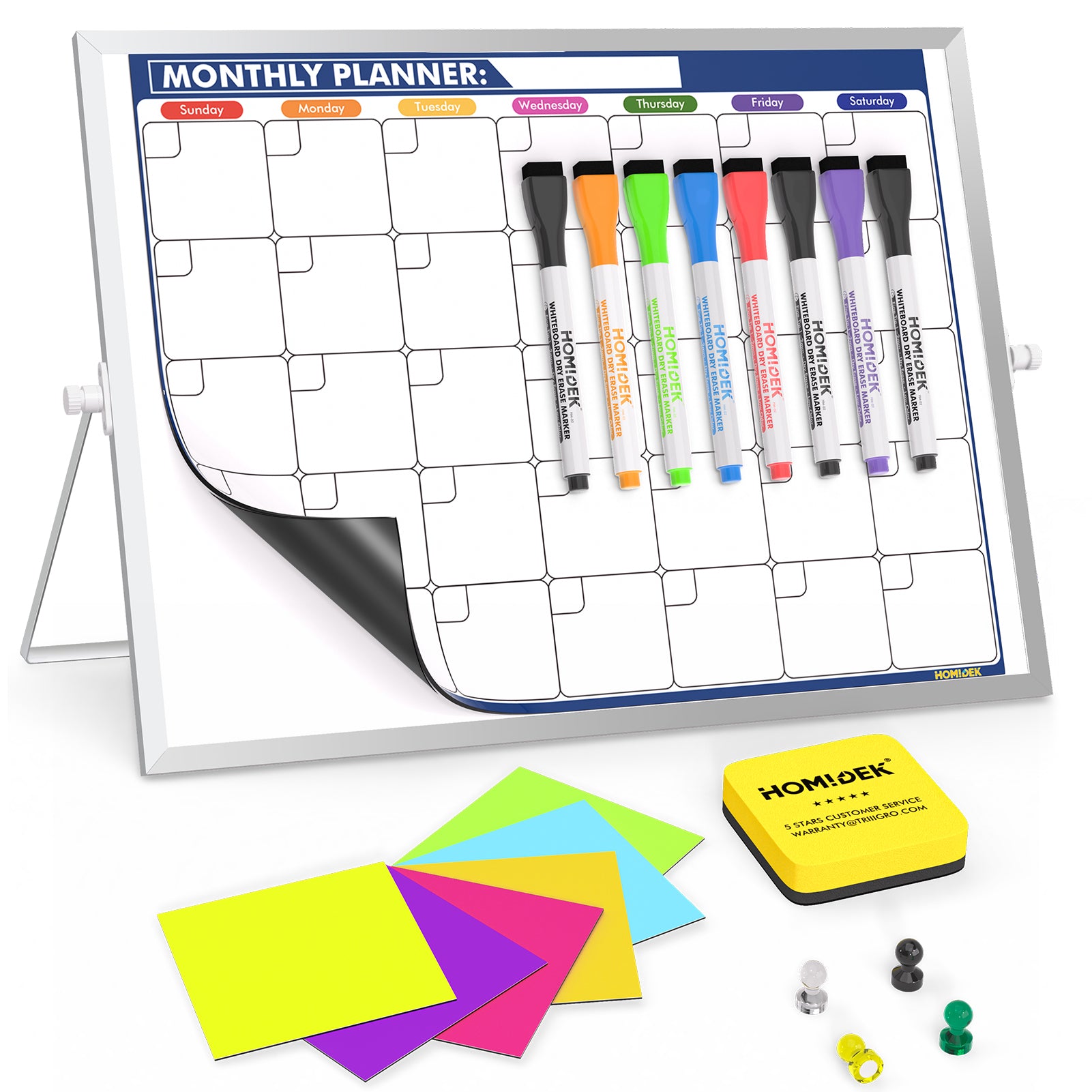Include 5 colorful fine tip dry erase markers, 1 big eraser and 1 fridge magnetic whiteboard. Everything is strongly magnetic so the accessories will always stick right away next to your magnetic dry erase board for refrigerator. make more fun for your kids and family to paint or write notes etc. Ideal complete set for home, office, or classroom.