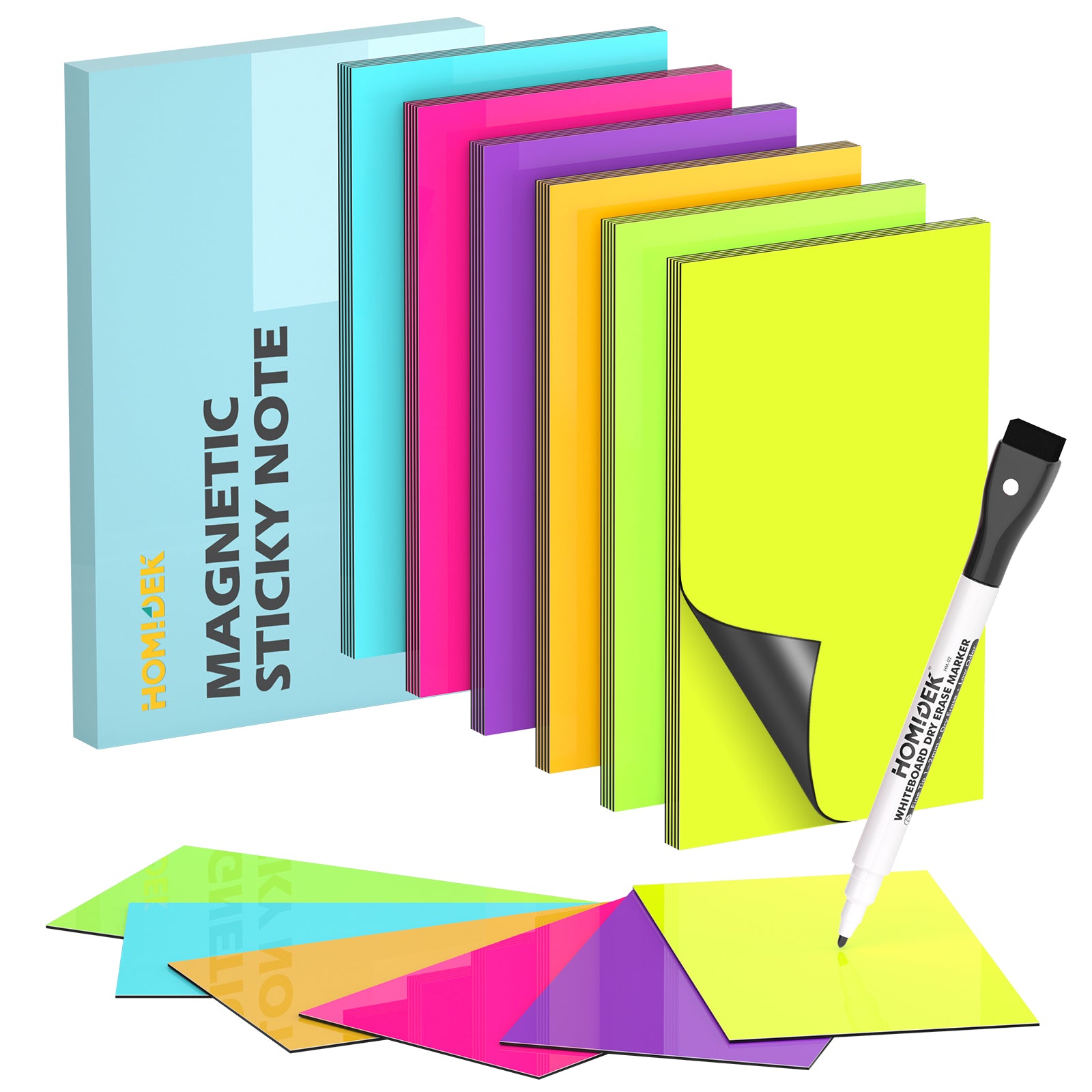 Include 5 colorful fine tip dry erase markers, 1 big eraser and 1 fridge magnetic whiteboard. Everything is strongly magnetic so the accessories will always stick right away next to your magnetic dry erase board for refrigerator. make more fun for your kids and family to paint or write notes etc. Ideal complete set for home, office, or classroom.